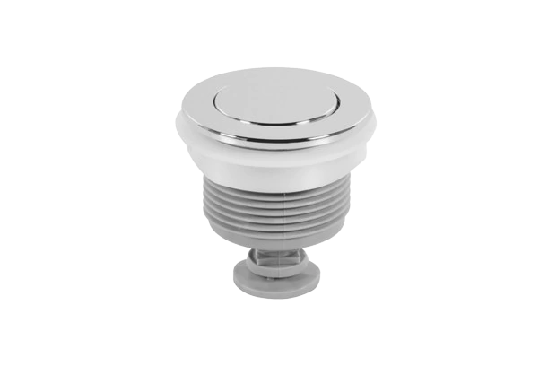 Botão de acionamento simples superior para caixa acoplada, utilizada para promover o acionamento da descarga dos mecanismos de saída convencionais.