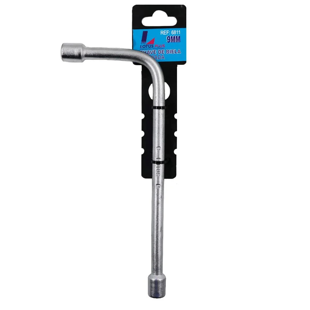 Chave de Biela Longa Lotus, possui ponta sextavada e vazada, sua haste em L e seu braço extra longo flexibiliza e facilita a operação. Feita em aço carbono forjado temperado galvanizado, é utilizado para porcas e parafusos com cabeça sólida.