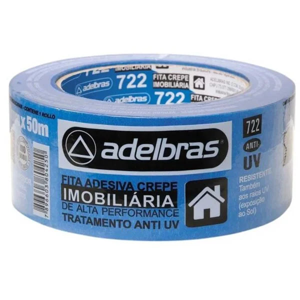 Papel crepe saturado na cor azul, coberto com adesivo à base de borracha e resinas.
