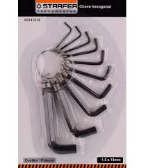 O jogo de chaves Allen Starfer possui excelente qualidade, durabilidade e praticidade. Indicado para parafusos com sextavado interno. Indicada para uso profissional, seu formato em “L” proporcionando efeito alavanca para minimizar o esforço físico facilita o trabalho do usuário, principalmente em locais de difícil acesso. Indicado para serralheria, oficina mecânica, tornearia, chaveiro, hobby, construção civil, marcenaria, informática, eletricista, encanador etc.